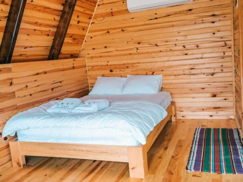 Çift katlı olan Bungalow'da, alt katında 1 adet ve üst katında 1 adet olmak üzere toplam 2 adet çift kişilik yatak bulunmaktadır. Ayrıca açılabilir kanepe yer almaktadır. Kendine özel müstakil bahçesi vardır.