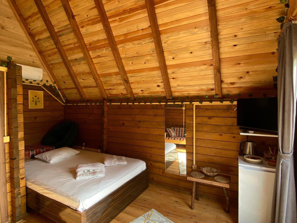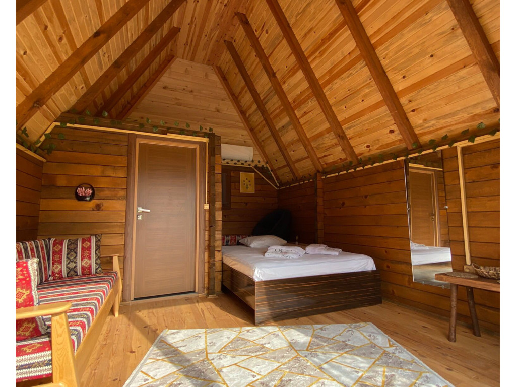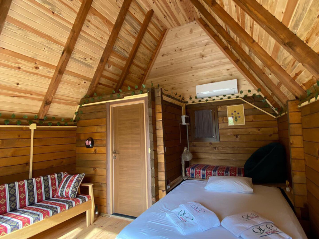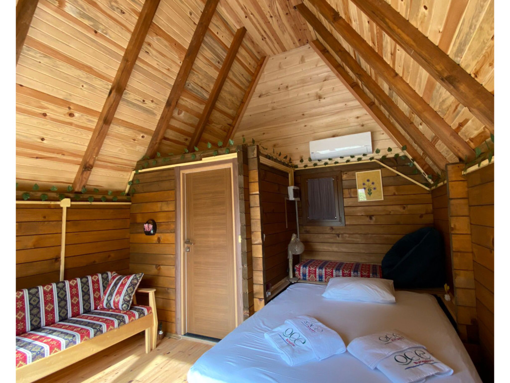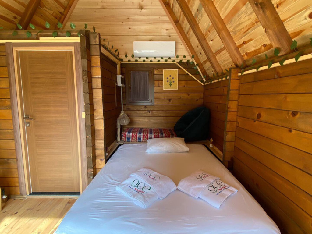 Tek katlı olan Bungalow'da, alt katında 1 adet toplam 1 adet çift kişilik yatak bulunmaktadır. Ayrıca açılabilir kanepe yer almaktadır. Kendine özel verandası vardır.
